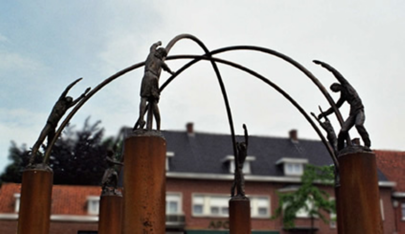 Bilzen, "Trotwaarleepers" beeldengroep op het Klokkenplein  |